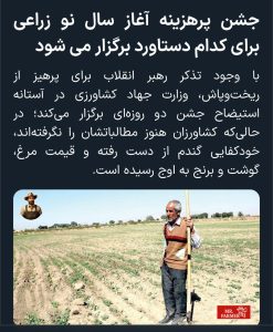 ????با وجود تذکر رهبر انقلاب برای پرهیز از ریخت‌وپاش، وزارت جهاد کشاورزی در آستانه استیضاح جشن دو روزه‌ای برگزار می‌کند؛ در حالی‌که کشاورزان هنوز مطالباتشان را نگرفته‌اند، خودکفایی گندم از دست رفته و قیمت مرغ، گوشت و برنج به اوج رسیده است.